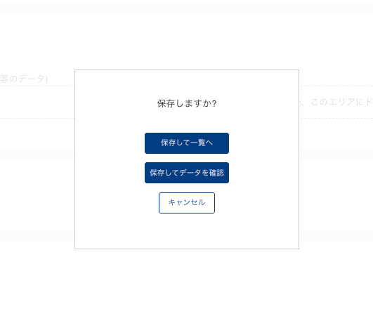 - 保存後のオプションが表示されたら、「保存して一覧へ」または「保存してデータを確認」のいずれかをクリックして完了です。
